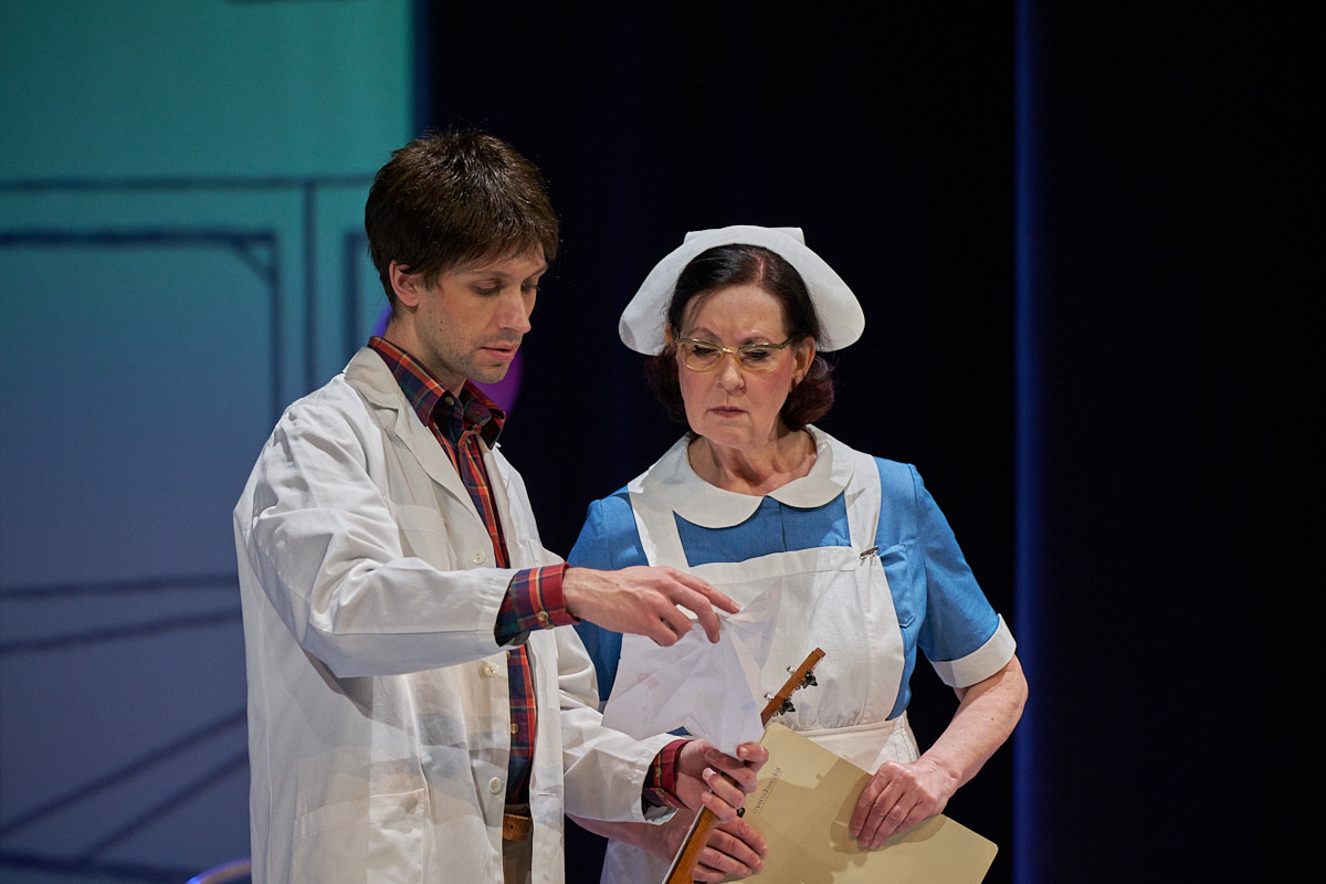 HIMMELTUNNERTORIA Ganz z' usserscht usse und änne am Rhy do liit es chliises Stuck Wält. Unser Schaffhausen damals eine andere Welt als heute. Es fuhr noch das Tram durchs Städtli, Büroarbeit wurde mit der Schreibmaschine erledigt und im Spital gabs eine Kinderstation in der Oberschwester Annegreth herrscht. Eine strenge Frau, die sich tagein tagaus um die kleinen Patientinnen und Patienten kümmert, doch trotz dem von ihr sorgfältigst geregeltem Spitalalltag läuft nie alles nach Plan. Am meisten Arbeit machen ihr die Assistenzärzte und Schwestern. Assistenzarzt Bieser ist Oberschwester Annegreth besonders ein Dorn im Auge. Er ist viel zu lässig und unpünktlich. Da vor den kleinen Patienten niemals Aufhebens gemacht werden darf, wenn etwas nicht so läuft wie sie sich das wünscht und schon gar nicht öffentlich geflucht werden soll, ertönt immer wieder "Himmeltunnertoria" durch die Zimmer und Gänge. So macht sich Annegreth Luft. Auch Selma möchte manchmal zum Himmel hoch schimpfen. Sie ist krank und das Kinderspital ihr zweites Zuhause. Regelmässig ist sie dort zur Dialyse. Eine Maschine hilft ihrem Körper bei der Blutreinigung. Das dauert lange, ist langweilig und ermüdend. Da kämen lustige Bettnachbarn im Spitalzimmer mit einem Gipsbein, einer Mandeloperation oder einem Blinddarm eigentlich gerade recht, bringen sie doch Abwechslung in den tristen Tag. Warum aber Freude und Freundschaften zulassen wenn doch gerade alles so blöd ist. Selma will nur noch auf ein Wunder warten. Dass es sich lohnt wird sich zeigen, denn alle auf der Station machen es immer wieder möglich, dass mit viel Geschick, Fantasie und ein paar Tricks nicht nur kleine sondern auch grosse Wunder passieren.